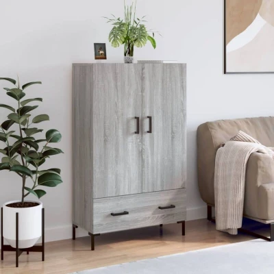 ManoManoGeneral description This stylish highboard adds a modern charm to your existing interior. Made from durable engineered wood, it features a smooth surface, strength, stability, and resistance to moisture. The metal legs provide a contemporary look while ensuring stability. Technical specifications Colour: Grey sonoma Material: Engineered wood, metal Overall dimensions: 69.5 x 31 x 115 cm (W x D x H) Assembly required: Yes Usage The highboard offers ample storage space for keeping your daily essentials organized and within easy reach. The stable top is perfect for displaying decorative items, picture frames, and potted plants. Keep your essentials free from dust by hiding them behind the doors, which are easy to open thanks to the handles. Other information Warning: To prevent it from being overturned, this product must be used with the provided wall attachment device.