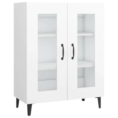 ManoManoGeneral description This classic sideboard is designed to be a decorative and practical addition to your home. It features a sturdy construction made from high-quality engineered wood, ensuring strength, stability, and moisture resistance. Technical specifications Colour: White Material: Engineered wood, glass Dimensions: 69.5 x 34 x 90 cm (W x D x H) Usage Ample storage space with 2 doors for organizing daily essentials. Visual glass doors allow easy visibility and access to stored items. The stable cabinet top is suitable for displaying decorative items such as vases and potted plants. Other information Each product comes with an assembly manual for easy setup. To prevent overturning, this product must be used with the wall attachment device provided.