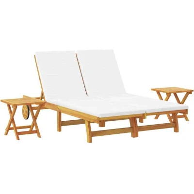 vidaXL Sun Lounger Reclining Cream White Solid Acacia Wood