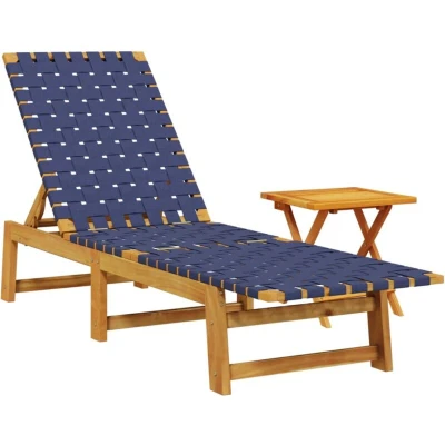 vidaXL Sun Lounger with Table Dark Blue Solid Wood Acacia and Fabric
