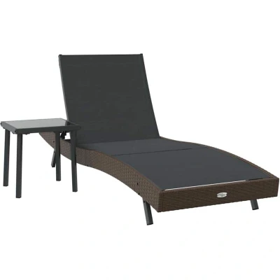 This Sun Lounger with Table provides a perfect blend of style and functionality for any outdoor setting. Designed for patios, terraces, and gardens, its modern aesthetic with clean lines and minimal ornamentation makes it a standout addition. Its adjustable backrest provides personalized lounging experiences, making it ideal for anyone seeking relaxation or social engagement under the sun. The inclusion of a sleek side table adds convenience, allowing for easy access to refreshments or personal items while lounging. With a rich black finish, this sun lounger offers an understated elegance, enhancing any outdoor space's look and vibe. Premium Materials: Made with poly rattan, the lounger ensures a sophisticated and resilient seating option. The robust powder-coated steel frame adds to the longevity, providing stability against heavy use and diverse weather conditions. These materials combine elegance with practicality, ensuring your sun lounger maintains its stunning appeal for years to come. Adjustable Backrest: The backrest of this lounger adjusts to four different positions, offering you customized comfort for sunbathing, reading, or napping. This feature allows users to seamlessly transition from upright to relaxed postures, enhancing versatility and the overall lounging experience. Enjoy a more personalized relaxation setup with flexibility tailored to your lifestyle. Weather Resistant Design: Built for the outdoors, this lounger features weather-resistant materials, ensuring it withstands the elements while retaining its look and function. The combination of waterproof, breathable surfaces with a sturdy frame lets you enjoy peace of mind, knowing your furniture is protected against rain, sun, and winds. Efficient Maintenance: Easily maintain its pristine appearance by wiping the surface with a dry cloth. This simple maintenance routine allows you to keep your furniture looking fresh with minimal effort. A quick clean keeps this lounger ready for your next relaxing moment without hassle. Complementary Side Table: The included table offers more than just aesthetics; it provides practical use. Topped with tempered glass, it serves as an ideal place for drinks, books, or snacks, ensuring your lounging environment is both functional and stylish. This pairing elevates the lounging experience by enhancing convenience while relaxing outdoors.