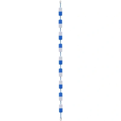 General description Our swimming pool safety divider rope is an essential accessory for pool owners. It serves as a safety marker line to distinguish between the deep and shallow ends of your pool, ensuring the safety of your loved ones. Made from high-quality materials, this durable rope is designed to last for many seasons. It features 9 ABS plastic floats that are UV- and chloride-resistant, enhancing the buoyancy of the rope. The two hooks allow for secure fastening to the pool, increasing impact resistance. The blue and white design adds a classic nautical feel to your pool. Technical specifications Colour: Blue and white Material: Plastic Rope length: 6 m Number of floats: 9 Number of hooks: 2 UV and chloride resistant Other information