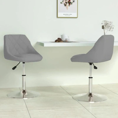 General description These trendy swivel dining chairs, featuring a modern design, make a great addition to your living space. Upholstered in soft-to-touch velvet, they provide optimal seating comfort. The chromed steel frame ensures high sturdiness, while the gas lift mechanism allows for height adjustment, making them a perfect fit for your dining area. With the ability to swivel 360 degrees, these chairs offer great flexibility. Technical specifications Colour: Light grey Material: Velvet (100% polyester), chromed steel Dimensions: 46 x 44 x (62.5-77.5) cm (W x D x H) Seat depth: 38.5 cm Backrest height: 30.5 cm Base diameter: 38.5 cm 360 degrees swivelling Gas lift mechanism Adjustable in height: Yes Assembly required: Yes Delivery contains: 2 x Swivel dining chair Other information