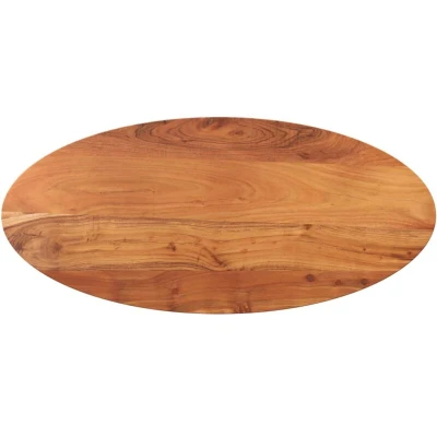 ManoManoGeneral description Give a new life to your table with this wooden table top. It is an excellent solution for freshening up your table at home or in a commercial setting. Made from solid acacia wood, this beautiful natural material is dense, sturdy, and durable. The replacement table top can be combined with different bases according to your needs, adding a rustic charm to your dining areas. Technical specifications Material: Solid acacia wood with a natural finish Overall dimensions: 110 x 40 x 3.8 cm (L x W x T) Shape: Oval Delivery only contains the table top Other information Each item is unique with variations in colors and grains, ensuring the exclusivity and individuality of your product.