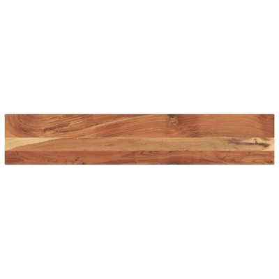 ManoManoGeneral description Give a new life to your table with this wooden table top. It is an excellent solution for freshening up your table at home or in a commercial setting. Made from solid acacia wood, this table top is dense, sturdy, and durable, making it a beautiful natural material for various applications. Technical specifications Material: Solid acacia wood with a natural finish Dimensions: 160 x 20 x 3.8 cm (L x W x T) Each item is unique with variations in colors and grains Delivery only contains the table top Usage Can be used for a bar table, side table, or custom creations Combines well with any styled legs Easy-to-clean surface; simply wipe with a damp cloth Rustic design adds charm to dining areas Other information