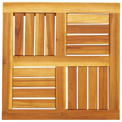 ManoManoGeneral description Give a new life to your garden table with this wooden table top. It is an excellent solution for freshening up your table. The replacement table top can be combined with different bases according to your needs, adding a rustic charm to your dining areas. Technical specifications Material: Solid acacia wood with a natural oil finish Dimensions: 50 x 50 x 2 cm (L x W x T) Shape: Square SKU: 4004253 Usage Easy to maintain: Thanks to its smooth surface, the table top is easy to clean with a damp cloth and requires less maintenance. To ensure your outdoor furniture stays beautiful, it is recommended to protect it with a waterproof cover. Other information