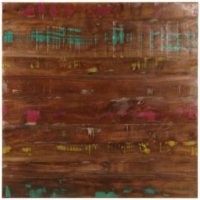 Give a new life to your table with this wooden table top. It is an excellent solution for freshening up your table at home or in a commercial setting. Solid reclaimed wood: Solid reclaimed wood consists of reused timbers such as teak, mango wood, pinewood, and beech. These materials are recycled from old buildings such as factories, sheds, and boats. As every piece is handmade, colours will vary for each product. Versatile applications: The replacement table top can be combined with different bases according to your needs. Rustic design: With a simple and clean look, the wooden furniture top will add a rustic charm to your dining areas. Easy-to-clean surface: The smooth tabletop is easy to clean with a damp cloth. Good to know: Each item is unique with variations in colours and grains. The delivery is random, ensuring the exclusivity and individuality of your product. Material: Solid reclaimed wood with a mixed colour finish Dimensions: 70 x 70 x 2.5 cm (L x W x T) Shape: Square