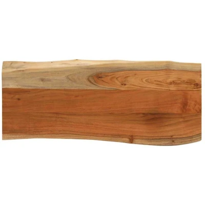 Give a new life to your table with this wooden table top. It is an excellent solution for freshening up your table at home or in a commercial setting. Solid acacia wood: Solid acacia wood is a beautiful natural material. Acacia wood is a tropical hardwood, which is dense, sturdy, and durable.Versatile applications: The wooden table top can be used for a bar table, side table, or even something of your own creation. You can combine this replacement table top with any styled legs.Live edge design: The wooden furniture top has a rustic live edge. Due to that the knots, cracks, slightly curved shapes, and colour tones are part of it, and every piece has its unique character to display.Easy-to-clean surface: The smooth tabletop is easy to clean with a damp cloth. Good to know:Each item is unique with variations in colours and grains. The delivery is random, ensuring the exclusivity and individuality of your product.
