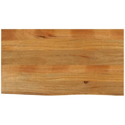 VidaXLGive a new life to your table with this wooden table top. It is an excellent solution for freshening up your table at home or in a commercial setting. Solid mango wood: Solid mango wood is a strong, tropical hardwood that makes sturdy furniture. Its beautiful wood grains make every piece of furniture slightly different from the next. Versatile applications: The replacement table top can be combined with different bases according to your needs. Live edge design: The wooden furniture top has a rustic live edge. Due to that the knots, cracks, slightly curved shapes, and colour tones are part of it, and every piece has its unique character to display. Easy-to-clean surface: The smooth tabletop is easy to clean with a damp cloth. Good to know:Each item is unique with variations in colours and grains. The delivery is random, ensuring the exclusivity and individuality of your product.Due to the natural shape of live edge solid wood, the width may vary slightly by +1-2 cm or –3-5 cm.