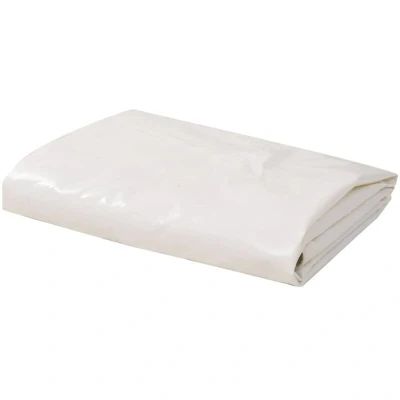 General description Our versatile, heavy-duty tarpaulin is ideal for covering garden furniture, log stores, trailers, cars, boats, bikes, work areas, and building materials, protecting them from the elements. The tarp can also be used as a cover for an open trailer or pickup truck or as a camping ground sheet. Technical specifications Colour: White Material: Canvas with a PVC coating Size: 5 x 6 m (W x L) Weight: 650 g/m² Temperature resistance: -30°C to 70°C With metal eyelets at all corners and along the edges Tear resistant and water resistant UV resistant and mould resistant Other information