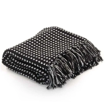 General description Drape the throw over a chair, the armrest of a sofa, or your bed to instantly add a relaxing atmosphere to your interior. Made of soft 100% cotton, this black plaid blanket features a trendy design with tassels, making it a perfect choice to enhance your space with extra color, texture, and warmth. Technical specifications Colour: Black Material: 100% cotton Size: 220 x 250 cm (W x L) Soft to the touch Machine washable at up to 40℃ Other information