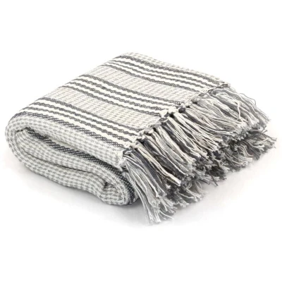 【Comfort Material】: Made with 100% pure cotton, the product is incredibly soft to touch and ensures ultimate comfort and warmth when draped over your body, making it a perfect companion for a cozy night in 【Care Instructions】: Ease of maintenance is guaranteed with this blanket that's machine washable at up to 40, making it easy to keep fresh and clean, and ensures durability 【Diverse Usage】: The throw can instantly add a relaxing atmosphere to any space be it a bedroom, living room, study or nursery, enhancing the visual appeal and comfort level of your interior 【Trendy Design】: The throw features a trendy grey and white stripe design with tassels which creates a stylish and modern addition to any room, giving a refreshing and neat look 【Generous Size】: With dimensions of 160x210 cm, the throw is large enough to easily cover a chair, armrest, bed or couch, making it versatile for various types of furniture and uses