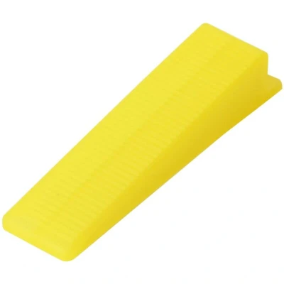 General description These reusable tile levelling wedges are excellent tools for holding tiles firmly in place during installation. They are designed to ensure flatness between tiles, making them a must-have for any tiling project. Technical specifications Material: Polypropylene (PP) Colour: Yellow Dimensions (each): 89 x 22 x 16.5 mm (L x W x H) Quantity: 500 pcs Usage Used in conjunction with a levelling clip to ensure flatness between tiles. Suitable for floor or wall tile installation. Compatible with all tile types, including porcelain, ceramic, marble, and natural stone. Other information