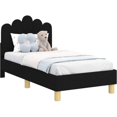 vidaXL Toddler Bed Frame with Headboard Black 70 x 140 cm Fabric