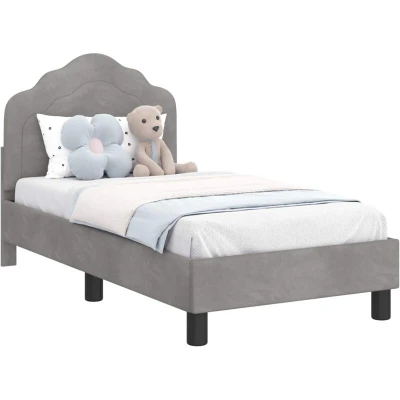 vidaXL Toddler Bed Frame with Headboard Light Grey 70 x 140 cm Velvet