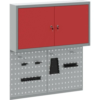 This versatile Wall Mounted Tool Cabinet and Pegboard Set is the essential piece for organizing your workshop or garage space. The set, featuring a sleek industrial design, brings an urban-inspired look with its powder-coated steel construction and smooth grey finish. Designed for indoor use, the cabinet provides a reliable solution to keep tools neatly stored and easily accessible, while the integrated pegboard adds functionality by allowing for customizable tool arrangements. Materials: Constructed from robust powder-coated steel, this cabinet set offers the ideal balance of strength and style. The smooth texture and grey finish lend a modern industrial appearance, guaranteeing long-term durability while effortlessly blending with various interior motifs. Comprehensive Components: The set includes metal shelves crafted from powder-coated steel to provide firm storage that withstands weight and regular use. With metal pegboards, users can easily customize tool organization, optimizing space for diverse tool types and sizes. Functional Design &Style: Featuring a wall-mountable design, the cabinet ensures valuable floor space is freed up, making it suitable for workshops or garages requiring efficient organization. This feature supports efforts to maintain an orderly and clean working environment. Versatile Usage Capabilities: While ideal for professional workshops, the flexibility of the cabinet's design makes it equally practical for home garages or DIY spaces. This adaptability allows users to transition effortlessly between different environments and project types. Simple Maintenance Instructions: Keeping this unit pristine is made easy with its smooth steel surface—just a quick wipe with a dry cloth maintains its clean, refined look. Simple cleaning steps ensure ongoing satisfaction and longevity of the cabinet's service and appearance.