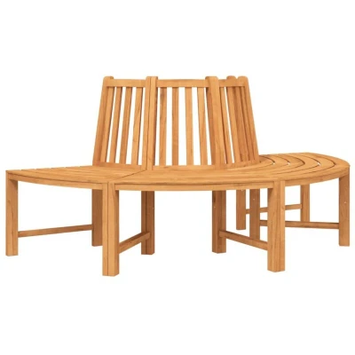VidaXLEnrich your favorite tree and create a natural canopy of shade with this wooden half round tree bench! Durable teak wood: Solid teak wood is a beautiful natural material. It has been seasoned, kiln dried and then fine sanded to give a very smooth appearance. Teak wood is known for its exceptional strength and weather resistance.Wrap-around design: Wrap your tree with this garden bench so guests can enjoy a broad outdoor natural landscape. You can also cool off under the trees or read a book.Comfortable seating experience: The bench has a backrest which makes it comfortable to sit on. Good to know:To make sure your outdoor furniture stays beautiful, we recommend protecting it with a waterproof cover.