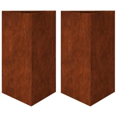 This garden planter would be a great choice to hold your favourite plants or flowers and add it to your gardens, balconies, or patios as decoration. Durable material: Weathering steel is anti-corrosive by its very nature. It develops a rusty protective layer against corrosion when first exposed to atmospheric conditions. Thus, you don't need to paint it. This can help you save on maintenance and repair costs. The distinctive brown colour on the weathering steel will surely be an eye-catcher. Finally, weathering steel is exceptionally durable and will stand up to the test of time.Ample space: The garden planter is deep enough to hold a large amount of soil and allow maximum growth potential for roots to growth, ensuring healthy development of your plants, vegetables, herbs, and flowers.Triangle design: You may use the garden planter separately or in clusters to create a unique gardening space by lining them up in a cool and tessellated arrangement. In addition, you can also easily intersect it with other planters to save space.Weeds and pests protection: This planter elevates your plants and protects them from weeds, pests and ground-dwelling insects.Versatility: The garden planter without drainage holes can stand on any surface without fear of flooding, holding your favourite plants or flowers to decorate your space. You are also free to make a hole in the bottom for drainage improvement. Good to know:This product is not rusted yet and has a normal metal colour when you receive it, but rust will develop over time. You could speed up the rusting process by spraying it with soap water and salt water. To keep your clothes stain-free, avoid contact with the developing rust layer.