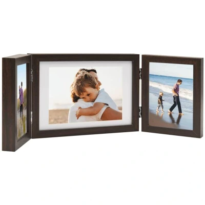 vidaXL Trifold Photo Frame Collage Home Bedroom Decor Modern Table Hinged Picture Display Foldable MDF Dark Brown