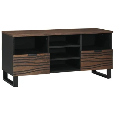 ManoManoGeneral description This Rustic TV Cabinet adds a touch of class to any living room. It's all about that perfect mix of style and practicality, radiating warmth and charm with its wavy pattern. More than just a place for your TV, it makes a stylish statement while enhancing your home’s decor. The layout is practical, with a textured finish that offers smart storage options and looks good doing it. Technical specifications Colour: Brown Material: Solid mango wood Overall dimensions: 100 x 33 x 46 cm (L x W x H) With drawer Assembly required: Yes EAN: 8721158451194 SKU: 4018026 Brand: vidaXL Installation Assembly is best done with two people, using a screwdriver and hammer while following the easy instructions for a smooth setup. Usage This cabinet turns clutter into a tidy setup, making it a must-have in the living room for electronics, media, and more. Use it as a focal point for your entertainment area. Other information