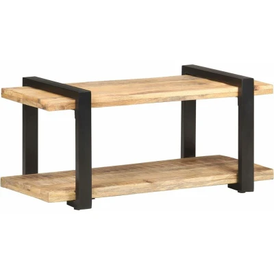 VidaXLThis wooden TV cabinet featuring an industrial style is meant to be the focal point of your living room or entertainment area. It can also be used as a coffee table, sideboard, low board, etc. The TV stand is made of rough mango wood, a tropical hardwood with the strength to bear the weight. It also stands the wear and tear of time, making it stable and durable. The craftsmanship and the beautiful wood grains make every piece of furniture unique and slightly different from the next. The black powder-coated iron legs add its extra stability. The bottom shelf enables you to keep DVD players, game consoles, streaming devices and media carriers neatly organised. Important note: The colours vary from piece to piece, making each piece unique. The delivery is random, ensuring the exclusivity and individuality of your product.