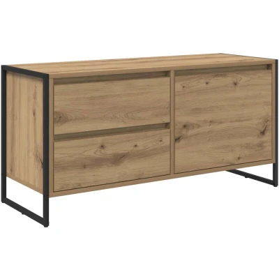 This Industrial TV Cabinet is a remarkable addition to a living room, particularly for those who appreciate a blend of contemporary flair and rugged charm. Fashioned from engineered wood with a steel leg frame, this piece offers a delightful juxtaposition of textures and finishes. The cabinet is designed to host various media gadgets seamlessly and adds an industrial accent, enhancing the look of any space. With its ample storage space, this cabinet suits homeowners who value both form and function, providing a practical solution to keep your living area organized and stylish. Engineered Wood Structure: Crafted from durable engineered wood, this TV cabinet offers both robustness and a pleasing appearance. The wood's natural finish not only exudes warmth and authenticity but also ensures lasting beauty and stability. This choice of material brilliantly supports the weight of TVs and additional décor items, making it a trustworthy component for your entertainment setup. Functional Surface Material: With its engineered wood surface, the top of the cabinet serves as an ideal platform for modern electronics, from flat-screen televisions to surround sound systems. An inherently smooth finish on the surface allows easy cleaning, thereby maintaining an immaculate look with minimal effort, adding an element of practical luxury to your home. Industrial Steel Legs: Supporting the structure are sturdy steel legs that not only lend a modern, industrial touch but also ensure unwavering stability. The robust legs provide excellent weight distribution, firming the cabinet's position on various flooring types, preventing any undue rocking or tipping. Generous Storage Capacities: Featuring spacious compartments and open shelves, the cabinet allows for efficient organization of media players, consoles, and other accessories. This modular arrangement makes it easier to keep essentials within easy reach while keeping the living environment clutter-free. Convenient Assembly: Designed for user-friendly assembly, this TV cabinet requires minimal effort from two individuals using a screwdriver, ensuring the unit is ready for use within no time, enhancing its appeal as a functional, stylish addition to any home.