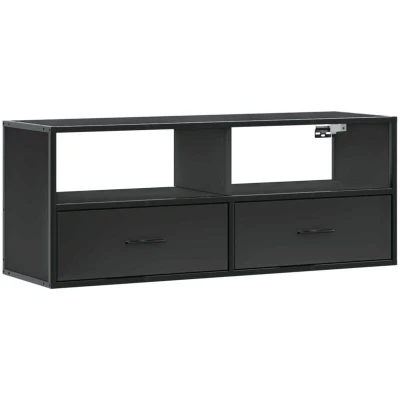 ManoManoGeneral description Featuring a trendy yet practical design, this sturdy TV cabinet will become a focal point of your room. The metal frame enhances your interior with an industrial style while providing exceptional durability, stability, and resistance to corrosion. The engineered wood material is durable and stable, with a smooth surface that is resistant to moisture, warping, and splitting, making it a reliable choice for various projects. The TV unit offers ample storage space for keeping your DVD players, receivers, disks, and other small items well organized and within reach. Additionally, this media cabinet can be wall-mounted, allowing you to save floor space. Technical specifications Colour: Black Material: Engineered wood, metal Dimensions: 100 x 31 x 39.5 cm (L x W x H) Can be assembled up or down Assembly required: Yes Installation Screws and plugs for inside the wall are not included. It is advised to find and use screws and plugs suitable specifically for your walls. If