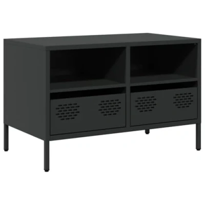 ManoManoGeneral description This sturdy TV cabinet with an industrial style makes a timeless addition to your living room or bedroom. The frame is made of cold-rolled steel, known for its smoother surface, greater strength, and higher precision. The cabinet features ample storage space with 2 compartments and 2 drawers, making it easy to keep your daily essentials organized and within reach. Additionally, it is equipped with adjustable screw feet to ensure stability on uneven floors. Technical specifications Colour: Black Material: Cold-rolled steel Dimensions: 68 x 39 x 43.5 cm (L x W x H) Storage: 2 compartments and 2 drawers Assembly required: Yes Other information