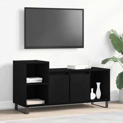 ManoManoGeneral description This Modern Black Oak TV Stand is perfect for any living room. It is designed to hold your TV and media equipment while adding a touch of modern style. Crafted from high-quality engineered wood, it features a sleek matte black finish that complements contemporary decor. The built-in shelves and sliding doors provide a stylish yet practical way to keep your entertainment items organized and easily accessible. Technical specifications Dimensions: 100 x 35 x 55 cm Material: Engineered wood Finish: Matte Color: Black Shape: Rectangular Surface Height: 2 cm Leg Height: 10 cm Number of Doors: 2 Assembly Required: Yes Recommended Number of People for Assembly: 2 SKU: 862970 EAN: 8721158773364 Usage Ideal for organizing media devices and accessories. Perfect for enhancing the decor of living rooms with a modern aesthetic. Other information