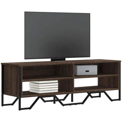 ManoManoGeneral description This TV cabinet with ample storage space is a practical and eye-catching addition to your living room or bedroom. It provides a modern design while ensuring functionality, making it perfect for organizing your multimedia devices, books, and decorative items. Technical specifications Colour: Brown oak Material: Engineered wood, metal Dimensions: 122 x 34 x 41 cm (W x D x H) Maximum load capacity (total): 60 kg Assembly required: Yes Usage The sturdy top is ideal for placing your TV and stereo systems or decorative items like vases or potted plants. The cabinet is easy to clean with a damp cloth, requiring minimal maintenance. Other information