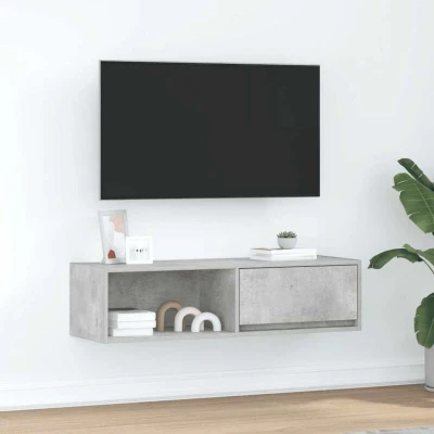 ManoManoGeneral description This TV wall cabinet is the perfect solution for your living space to maximize space and keep the floor areas uncluttered. It features a space-saving design that can be wall-mounted, providing ample storage for magazines, books, DVDs, and multimedia devices while keeping the area clean. Technical specifications Colour: Concrete grey Material: Engineered wood Overall dimensions: 100 x 31 x 25.5 cm (W x D x H) Drawer dimensions: 47 x 23.5 x 19.5 cm (W x D x H) Overall max. weight capacity: 60 kg Max. weight capacity per shelf: 20 kg Max. weight capacity per drawer: 5 kg With 1 drawer and 1 shelf Assembly required: Yes Usage The sturdy top is ideal for placing your TV and stereo systems or decorative items like vases or potted plants. The smooth surface allows for easy cleaning with a damp cloth, requiring less maintenance. Other information