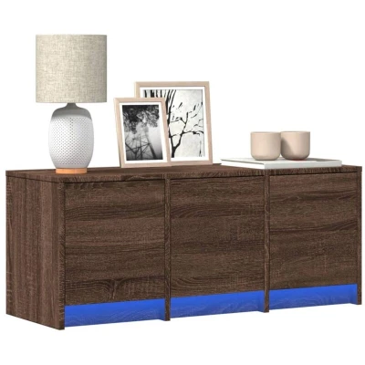 vidaXL TV Cabinet Engineered Wood, Brown Oak, 97x34x40 cm, LED Lights, Storage