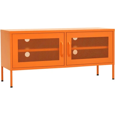 Amazon【Spacious Storage】: Featuring two mesh doors with a shelf inside, this TV unit offers ample space for DVDs, magazines and other essentials. Keeps your space clutter-free 【Versatile Use】: With dimensions of 41.3" x 13.8" x 19.7", this TV cabinet can accommodate various TV sizes. Also, includes adjustable levelers for optimal positioning 【Sturdy Construction】: Made from high-quality steel, ensuring durability and stability. Ideal for supporting heavy electronics without any wobble or shake 【Easy Maintenance】: The steel material is effortless to clean. Simply wipe it with a damp cloth to remove dust or spills. Low maintenance factor adds to its appeal 【Vibrant Appearance】: This vidaXL TV Stand enhances your living space with its bold orange color and trendy industrial style. Perfectly suited for contemporary décor
