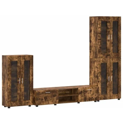 vidaXL TV Cabinet Set with Drawer Door Smoked Oak Engineered Wood