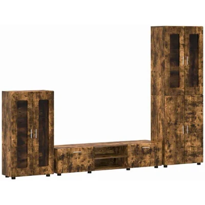 vidaXL TV Cabinet Set with Drawer Door Smoked Oak Engineered Wood