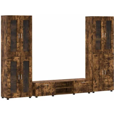 vidaXL TV Cabinet Set with Drawer Door Smoked Oak Engineered Wood