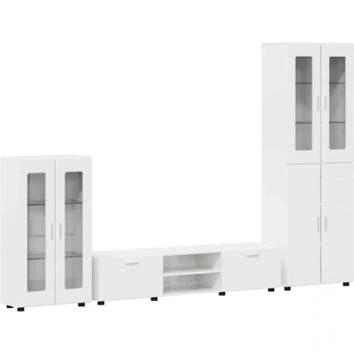 vidaXL TV Cabinet Set with Drawer High Gloss White Engineered Wood