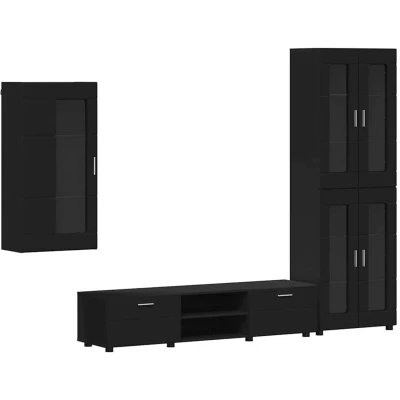 vidaXL TV Cabinet Set with Drawer Shelf Black Engineered Wood