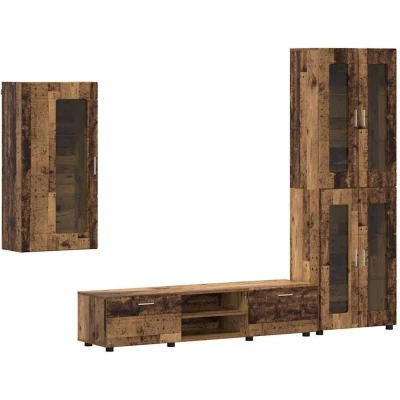 vidaXL TV Cabinet Set with Drawer Shelf Old Wood Engineered