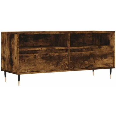 ManoManoGeneral description This TV cabinet with ample storage space is a practical and eye-catching addition to your living room or bedroom. It features a sturdy construction made from high-quality engineered wood, ensuring strength, stability, and resistance to moisture. The smooth surface makes it easy to clean with a damp cloth. Technical specifications Colour: Smoked oak Material: Engineered wood, iron Dimensions: 100 x 34.5 x 44.5 cm (L x W x H) Assembly required: Yes Usage Ample storage space with 2 compartments and 2 drawers for organizing magazines, books, DVDs, and multimedia devices. Stable tabletop suitable for placing books, cups, and decorative items. Iron legs provide sturdiness and stability. Other information