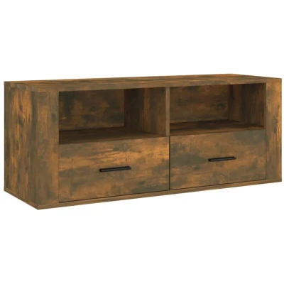 General description This classic TV cabinet is a practical and eye-catching addition to your interior. It is designed to provide ample storage space while enhancing the aesthetic of your living area. Technical specifications Colour: Smoked oak Material: Engineered wood Dimensions: 100 x 35 x 40 cm (W x D x H) Usage Features drawers and compartments to keep DVD players, game consoles, streaming devices, and media carriers organized and within reach. The sturdy top serves as an ideal place for books and ornaments. Other information Each product comes with an assembly manual in the box for easy assembly.