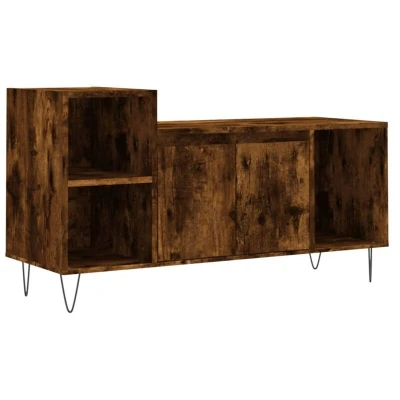 Featuring a stylish yet practical design, this TV cabinet is meant to become a focal point of your room. Sturdy material: The engineered wood is of exceptional quality with smooth surface and also features strength, stability and resistance to moisture. Ample storage space: Equipped with 5 compartments, the TV stand offers ample storage space to keep all your magazines, DVDs and any other items well organised. Sturdy top: The top of the TV unit provides a secure surface to display decorative objects, photo frames, or potted plants. Practical doors: Keep your essentials free from dust by hiding them behind the doors of the media cabinet. Warning: To prevent it being overturned, this product must be used with the provided wall attachment device. Colour: Smoked oak Material: Engineered wood, metal Dimensions: 100 x 35 x 55 cm (W x D x H) Assembly required: Yes Legal Documents: More details about preventing your furniture from tipping over can be found here SKU: 831321 EU responsible