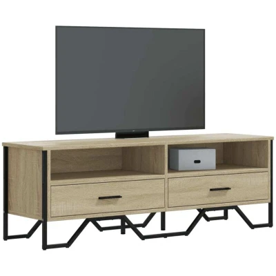 General description This TV cabinet with ample storage space is a practical and eye-catching addition to your living room or bedroom. It provides a modern design while ensuring functionality with its spacious compartments for organizing magazines, books, DVDs, and multimedia devices. Technical specifications Colour: Sonoma oak Material: Engineered wood, metal Dimensions: 122 x 34 x 41 cm (W x D x H) Maximum load capacity (total): 60 kg Assembly required: Yes Usage Stable and durable material: Engineered wood is resistant to moisture, warping, and splitting, making it a reliable choice. Easy to maintain: The TV cupboard can be easily cleaned with a damp cloth. Stable and sturdy tabletop: Ideal for placing your TV, stereo systems, or decorative items like vases or potted plants. Metal handles: Provides easy access and adds a stylish industrial touch to the design. Other information