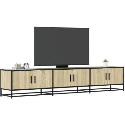 ManoManoGeneral description This TV cabinet with ample storage space is a practical and eye-catching addition to your living room or bedroom. It features a stable and durable construction, combining engineered wood and a metal frame that enhances your interior with an industrial style. Technical specifications Colour: Sonoma oak Material: Engineered wood, metal Dimensions: 210 x 35 x 41 cm (W x D x H) Maximum load capacity (top): 30 kg Maximum load capacity (each compartment): 15 kg Maximum load capacity (total): 60 kg With 3 compartments with doors Assembly required: Yes Usage Provides ample storage space for magazines, books, DVDs, and multimedia devices. Stable and sturdy tabletop ideal for placing your TV, stereo systems, or decorative items. Easy to maintain with a damp cloth. Other information