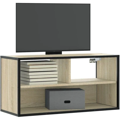 ManoManoGeneral description Featuring a trendy yet practical design, this sturdy TV cabinet will become a focal point of your room. The metal frame enhances your interior with an industrial style while providing exceptional durability and stability. Technical specifications Colour: Sonoma Oak Material: Engineered wood, metal Dimensions: 80 x 31 x 39.5 cm (L x W x H) Assembly required: Yes Can be assembled up or down Installation This media cabinet can be wall-mounted, allowing you to hang it on the wall without taking up any floor space. Screws and plugs for inside the wall are not included. It is advised to find and use screws and plugs suitable specifically for your walls. Please read and follow each step of the instructions carefully. Usage The TV unit offers ample storage space for keeping your DVD players, receivers, disks, and other small items well organized and within reach. Other information