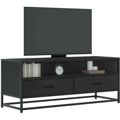 ManoManoGeneral description This TV cabinet with ample storage space is a practical and eye-catching addition to your living room or bedroom. The metal frame enhances your interior with an industrial style while providing exceptional durability and stability. Technical specifications Colour: Black Material: Engineered wood, metal Overall dimensions: 100 x 34.5 x 40 cm (L x W x H) Assembly required: Yes Usage Ample storage space for magazines, books, DVDs, and multimedia devices. Stable and sturdy tabletop suitable for placing your TV, stereo systems, or decorative items. Easy to clean with a damp cloth and requires minimal maintenance. Other information