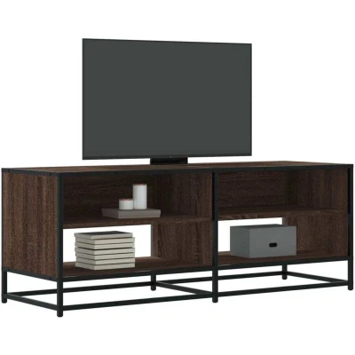 ManoManoGeneral description This TV cabinet with ample storage space is a practical and eye-catching addition to your living room or bedroom. The metal frame enhances your interior with an industrial style while providing exceptional durability, stability, and resistance to corrosion. The engineered wood offers a smooth surface that is resistant to moisture, warping, and splitting, making it a reliable choice for various projects. Technical specifications Colour: Brown oak Material: Engineered wood, metal Overall dimensions: 120.5 x 40 x 46 cm (L x W x H) Assembly required: Yes SKU: 848893 Usage Provides ample storage space for magazines, books, DVDs, and multimedia devices. Sturdy top ideal for placing your TV, stereo systems, or decorative items like vases or potted plants. Easy to clean with a damp cloth and requires minimal maintenance. Other information