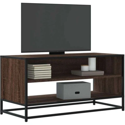 ManoManoGeneral description This TV cabinet with ample storage space is a practical and eye-catching addition to your living room or bedroom. The metal frame enhances your interior with an industrial style while providing exceptional durability and stability. Technical specifications Colour: Brown oak Material: Engineered wood, metal Overall dimensions: 91 x 40 x 46 cm (L x W x H) Assembly required: Yes SKU: 848888 Usage This TV cabinet provides ample storage space for keeping your magazines, books, DVDs, and multimedia devices well-organised and within reach. The sturdy top is ideal for placing your TV and stereo systems or decorative items like vases or potted plants. Other information Easy to maintain: The TV stand is easy to clean with a damp cloth and requires less maintenance.