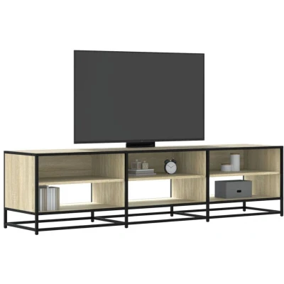 ManoManoGeneral description This TV cabinet with ample storage space is a practical and eye-catching addition to your living room or bedroom. It features a stable and durable design, combining engineered wood with a metal frame that enhances your interior with an industrial style. Technical specifications Colour: Sonoma oak Material: Engineered wood, metal Dimensions: 180 x 40 x 46 cm (W x D x H) Maximum load capacity (each layer): 15 kg Maximum load capacity (total): 70 kg With 6 shelves Assembly required: Yes Usage Provides ample storage space for magazines, books, DVDs, and multimedia devices. Sturdy top ideal for placing your TV, stereo systems, or decorative items like vases or potted plants. Easy to clean with a damp cloth and requires less maintenance. Other information