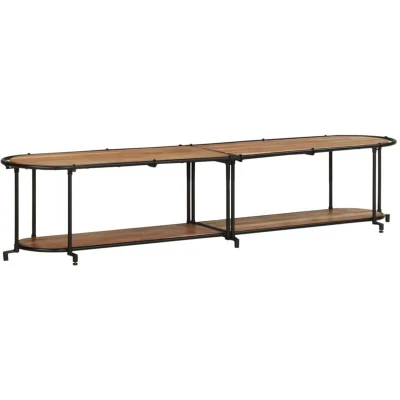 ManoManoGeneral description This TV cabinet with ample storage space is a practical and eye-catching addition to your living room or bedroom. Crafted from solid acacia wood, it is known for its strength and durability, featuring diverse colors and unique grain patterns that enhance its attractive appearance. The iron frame adds an industrial style while providing exceptional durability and stability. Technical specifications Material: Solid acacia wood, iron Overall dimensions: 200 x 42 x 40 cm (L x W x H) Colour: Brown and black Assembly required: Yes Usage The sturdy top is ideal for placing your TV and stereo systems or decorative items like vases or potted plants. This media cabinet provides ample storage space for keeping your magazines, books, DVDs, and multimedia devices well-organized and within reach. Other information